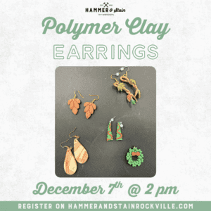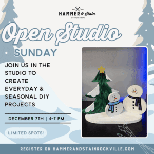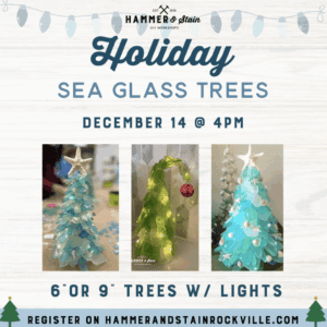 Join us on  December 14 at 4pm at Hammer & Stain Rockville to make your very own tumbled sea glass holiday tree. We will have a variety of glass colors and embellishments Read more…